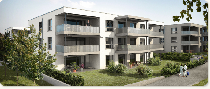 Mitten im Grünen und doch zentral: Die neue Wohnüberbauung Eichmatt-Villmergen punktet mit ihrer ruhigen Lage am Ortsrand. Angrenzend an die Landwirtschaftszone bietet diese Siedlung 112 moderne 2,5- bis 4,5-Zimmer-Wohnungen. Die sonnigen Balkone und Gartensitzplätze sind konsequent nach Südwesten ausgerichtet. Durch die harmonische, lockere Anordnung der insgesamt 12 Gebäude bestehen grosszügige Freiflächen.